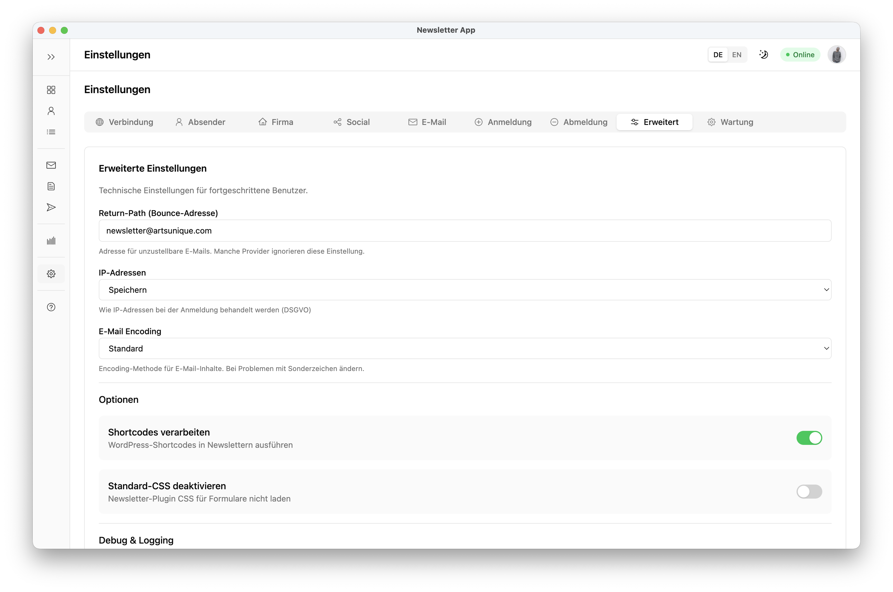 • Absender – Absender-Konfiguration festlegen